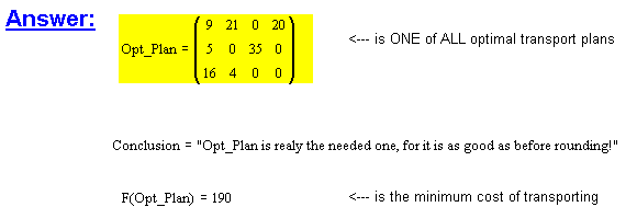 And here comes our real optimal transport plan with all integer values: