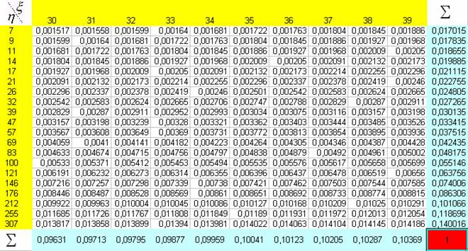 вектора, розподіл якого задано наступною таблицею (pzas_seminar_12.xls):